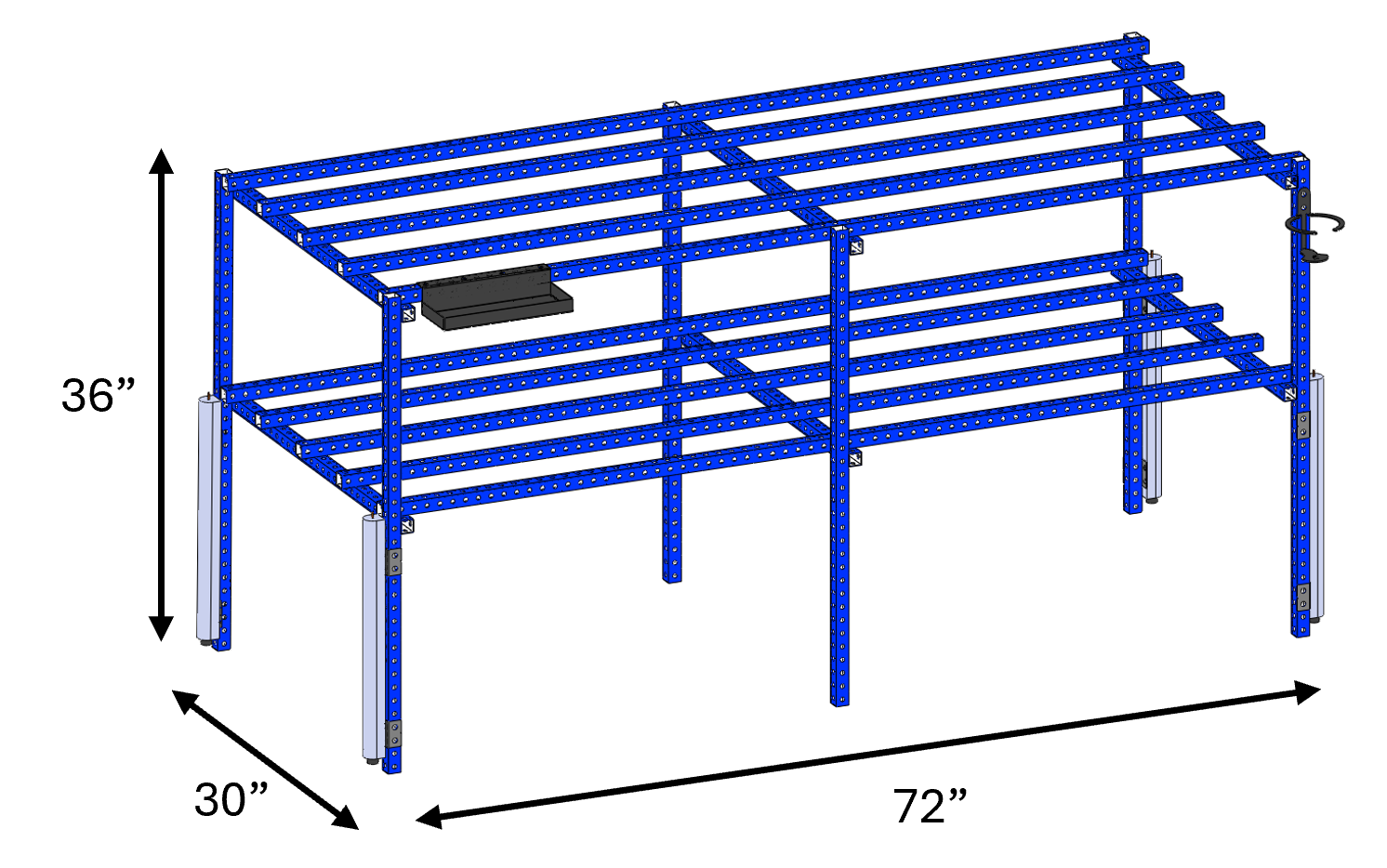 Assembled overall dimensions are L72″ x W30″ x H36″